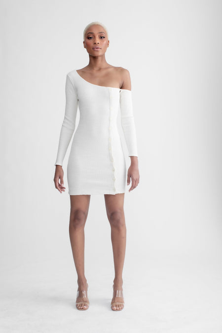 Asymmetrical Button Up Dress Ivory