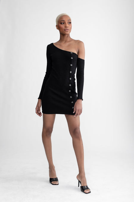 Asymmetrical Button Up Dress Black